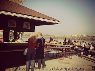Como a 15 km de salir de Budapest, hay una zona de restaurantes y bares donde paramos a comer el pescado típico (Hekk) y reponer fuerzas con una cerveza. Cuando llevas desde antes de irte de España sin comer pescado te hace hasta ilusión. La verdad que no fue muy barato, pero era abundante.